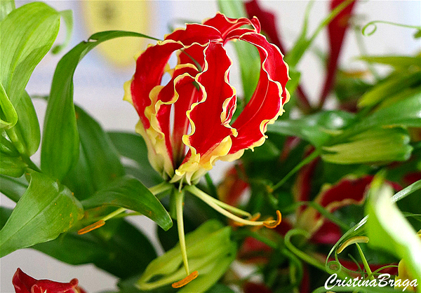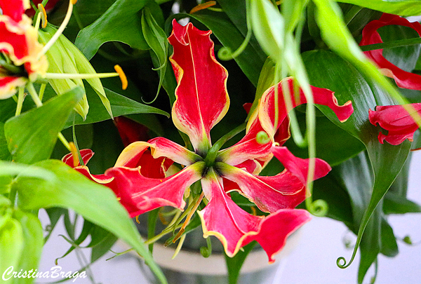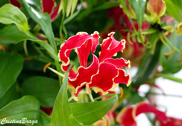 A Gloriosa – Gloriosa rothschildiana é uma trepadeira sarmentosa, pertence à família Colchicaceae, nativa do Sul da África, perene, com raízes tuberosas, de crescimento rápido, com até 2 metros de altura.