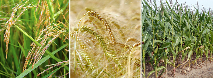 As Poaceae são a família de plantas economicamente mais importante, fornecendo alimentos básicos de culturas de cereais domesticados, como milho, trigo, arroz, cevada e milheto, bem como ração para animais produtores de carne. Eles fornecem, através do consumo humano direto, pouco mais da metade (51%) de toda a energia da dieta; arroz fornece 20%, trigo fornece 20%, milho (milho) 5,5% e outros grãos 6%.