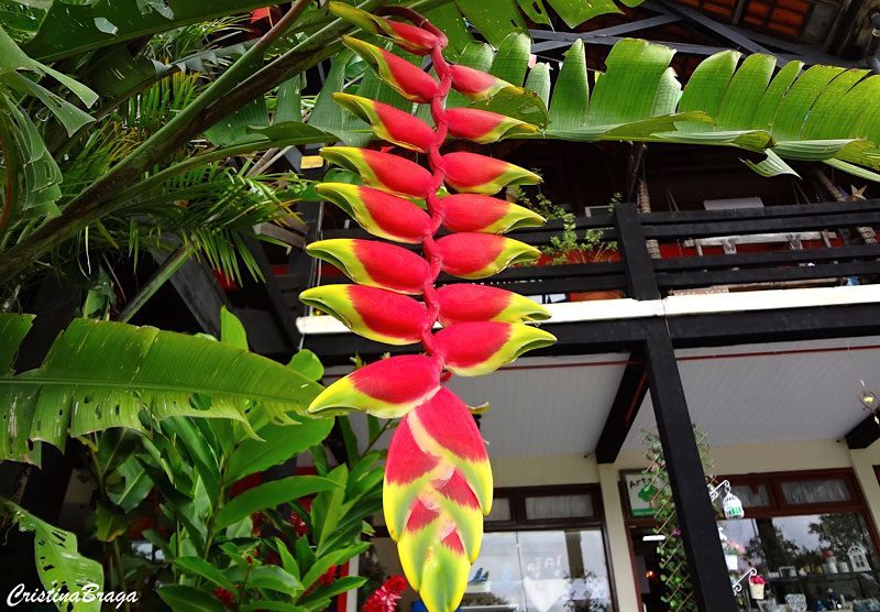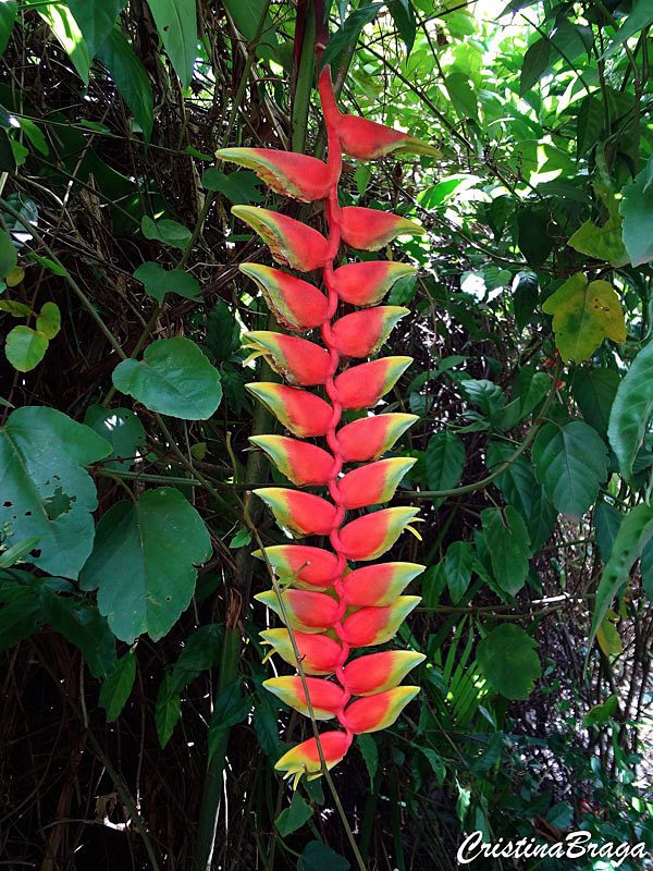 A Helicônia – Heliconia rostrata é um arbusto, pertence à família Heliconiaceae, nativa da América do Sul e Central, rizomatosa, entouceirada, de 2-3 metros de altura, com folhagem e florescimento ornamentais.