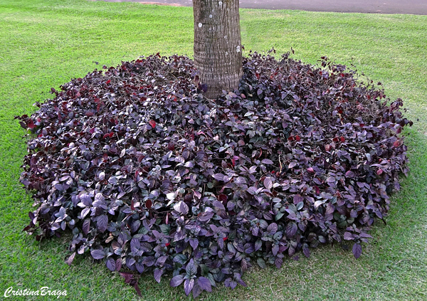 A Hera roxa – Hemigraphis alternata é uma herbácea, pertence à família Acanthaceae, nativa da Ásia Tropical, perene, reptante e de 15-20 centímetros de altura.