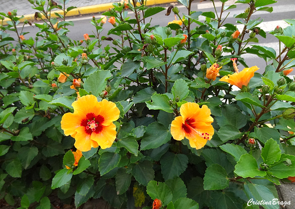 Flores de cor laranja intenso, em torno de 6 cm de diâmetro. Surgem quase o ano todo e ficam abertas por 2 dias.