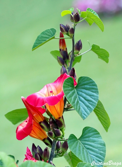 Inflorescências em racemos curtos, axilares, dispostas ao longo de toda ramagem. Flores em forma de sino, com cinco pétalas, róseo avermelhadas nas bordas, com a garganta mais clara e provida de listras vermelhas. Surgem quase o ano todo, com maior intensidade no final do outono e início do inverno.