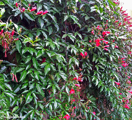 Flores grandes, brilhantes, de consistência cerosa em forma de funil, muito vistosas. Na forma típica são de cor vermelho-bordô, mas ocorrem variedades de flores brancas-rosadas, roxas e rosas-arroxeadas, mais raras em cultivo. Surgem na primavera e atraem beija-flores, borboletas e abelhas.