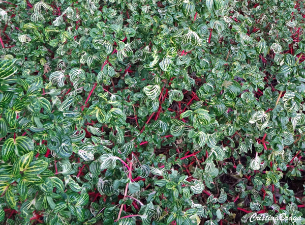 Folhas ovaladas com ápice agudo, a cor das folhas pode variar entre vermelho, rosa e verde, dependendo da variedade da planta. Ocorre uma variedade de folhas verdes com nervuras de coloração creme.