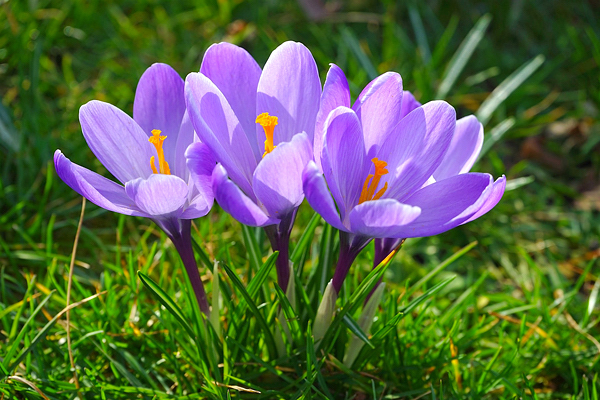 Crocus – Gênero de plantas bulbosas, acaules, de até 25 cm de altura. As folhas são finas, em forma de grama. As flores possuem pétalas lineares nas cores brancas, amarelas, azuis, rosa ou lilás. São de vida curta, florescendo por apenas um dia. O açafrão e obtido a partir dos estigmas do Crocus sativus. Florescem no outono, inverno ou primavera.