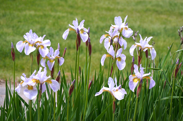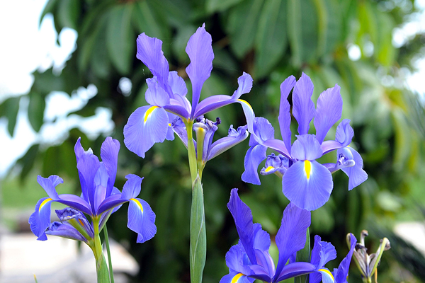Iris – Gênero de plantas rizomatosas, acaules, atingindo em média 1 metro de altura. As folhas são de consistência macia, lineares e aglomeradas em tufos. As flores são isoladas formadas acima da folhagem, com enorme variedade de cores e formas. Florescem na primavera-verão.