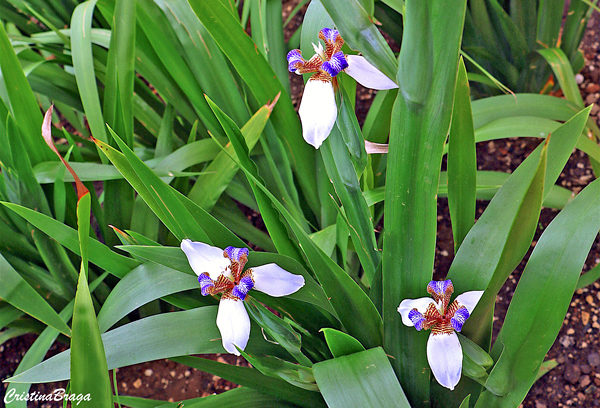 Íris da Praia – Neomarica candida é uma herbácea, pertence à família Iridaceae, nativa da América do Sul, perene, rizomatosa, com 40-90 cm de altura e muito ornamental.