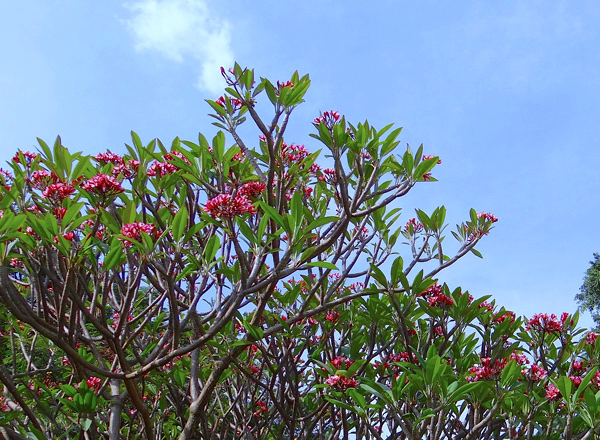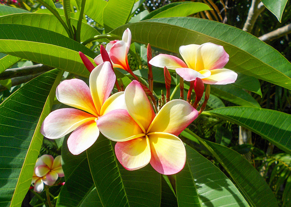 O Jasmim manga – Plumeria rubra é uma árvore, pertence à família Apocynaceae, nativa da América Tropical, perene, de 5-8 metros de altura e a copa atinge 6 metros de diâmetro.