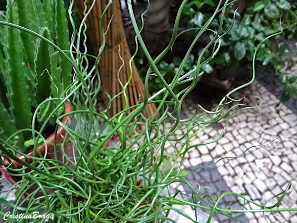 As hastes tem coloração verde-clara e crescem em forma de espiral e em várias direções, tanto horizontais como verticais.