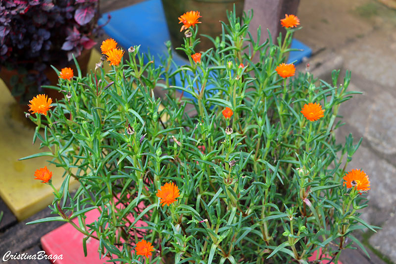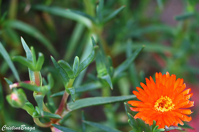 O Lampranthus aureus é uma herbácea, pertence à família Aizoaceae, nativo da África do Sul, perene, suculento e de 40-50 cm de altura.