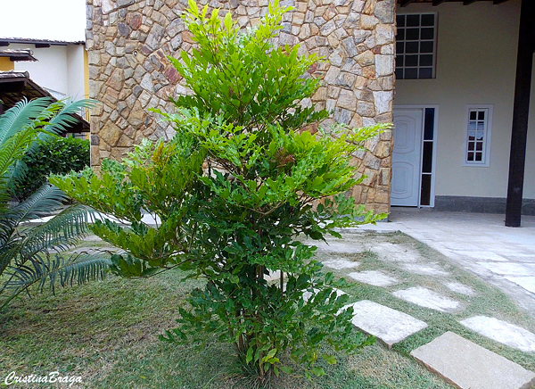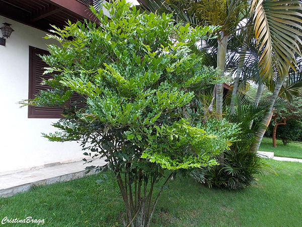 É uma planta arbustiva que pode assumir a forma de uma pequena arvoreta.