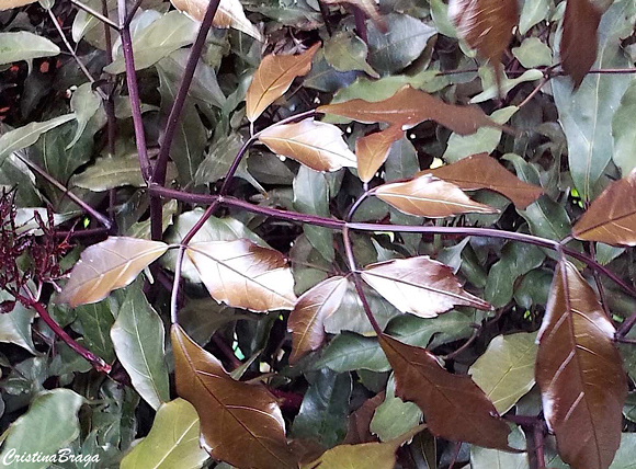 Léia vermelha – Leea rubra é um arbusto, pertence à família Vitaceae, nativa da Índia, Burma e Malaia, perene, entoucerada, de 2,0-2,5 m de altura e com 1,5 metros de diâmetro.