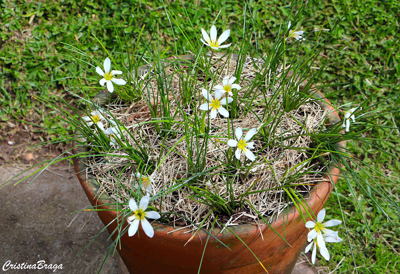 O Lírio do vento – Zephyranthes candida é uma herbácea, pertence à família Amaryllidaceae, nativa da Argentina e do Sul do Brasil, perene, bulbosa, de 20-30 cm de altura e muito ornamental.