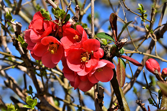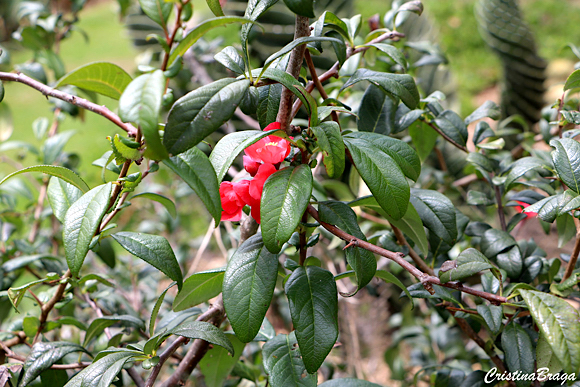 O Marmelinho ornamental – Chaenomeles speciosa é um arbusto, pertence à família Rosaceae, nativo da China, Tibete e Mianmar, perene, lenhoso, ereto, muito ramificado, de 1-2 metros de altura e muito ornamental.