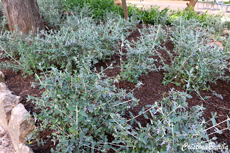 O Mato branco – Teucrium fruticans é um arbusto, pertence à família Lamiacea, nativo do Mediterrâneo e Norte da África, perene, de crescimento moderado a rápido, de com 0,60-1,00 metro de altura e muito ornamental.