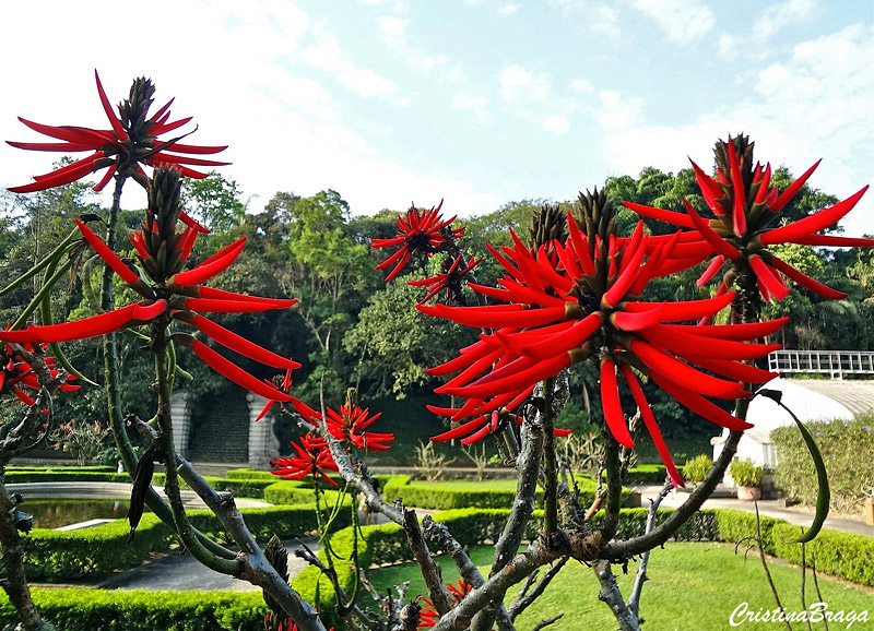 Flores em forma de candelabro, de cor vermelho-vivo. Surgem de junho a setembro e são muito atrativas para beija-flores, sanhaçus e cambacicas