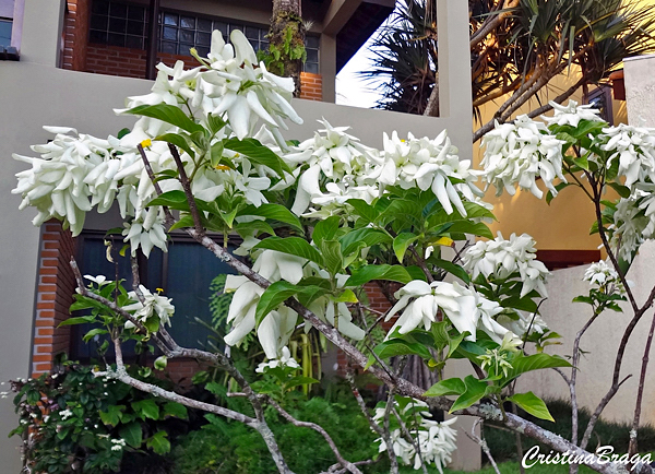 A Mussaenda Branca pode ser conduzida como uma arvoreta, removendo brotações laterais à medida que forem crescendo.