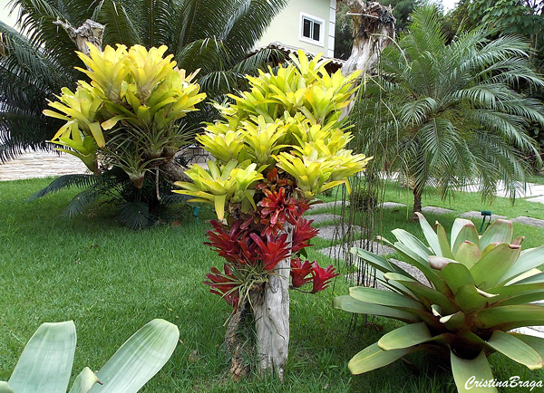 Deve-se encher o vaso central com água da chuva (trocar a cada quatro a seis semanas), quando plantada em vaso.