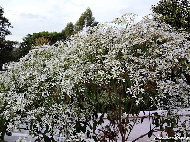 Noivinha – Euphorbia leucocephala é um arbusto, pertence à família Euphorbiaceae, nativa da América Central, perene, leitoso, de 2-3 metros de altura e muito ornamental.