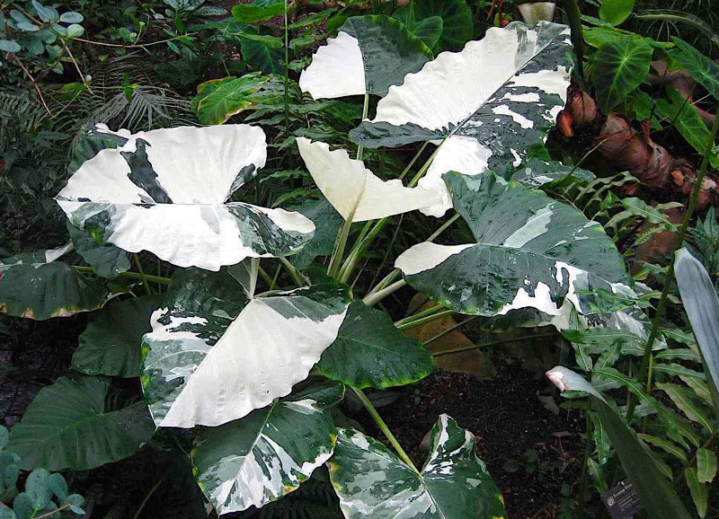 Para plantar a Alocasia em lagos residenciais é preciso que as raízes sejam revestidas com uma espécie de manta de feltro permeável, para não turvar a água. Mas este tipo de planta suporta apenas as raízes mergulhadas. A parte aérea precisa ficar fora d’água.