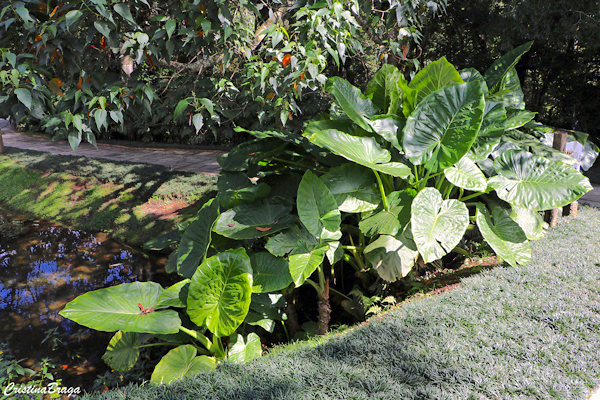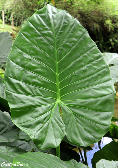 Orelha de elefante – Colocasia gigantea é uma herbácea, pertence à família Araceae, nativa da Península Malaia e de Java, perene, ereta, vigorosa, decídua e de até 3 metros de altura.