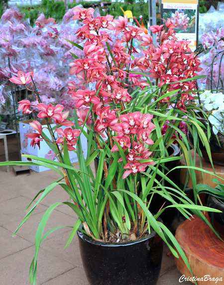 O Cymbidium é uma orquídea terrestre, pertence à família Orchidaceae, nativa da Ásia e Himalaia, perene, com até 1,5 metros de altura.