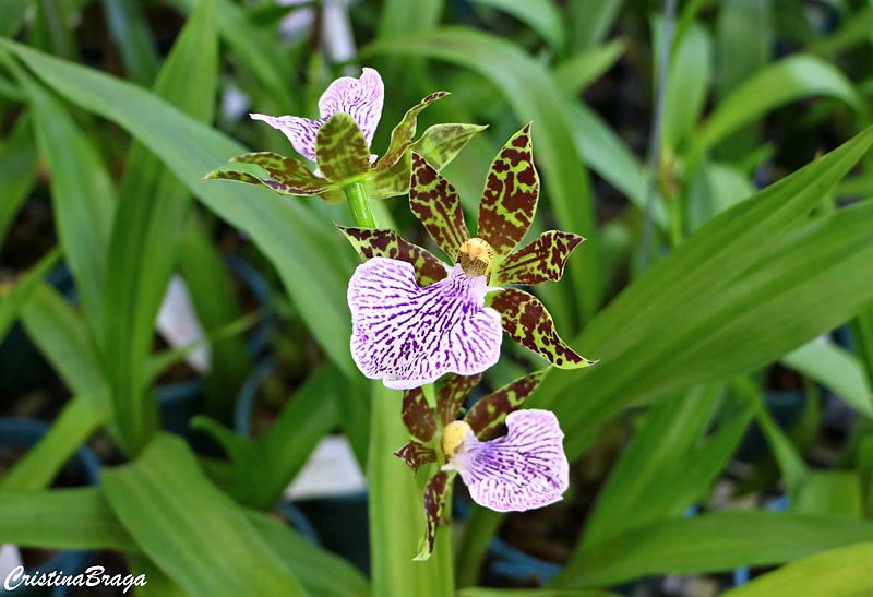 Flores vistosas, possuem um aspecto ceroso ou aveludado são muito duráveis com cerca de 6 cm de diâmetro. Pétalas esverdeadas, pouco ou intensamente maculadas de marrom e labelo branco, ou lilás, quase sempre estriado de roxo azulado. Surgem Inverno/Primavera.