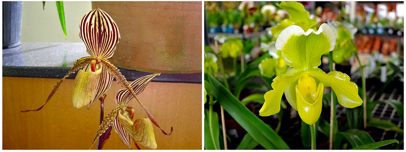 Paphiopedilum são divididos em dois grupos de temperatura: cultivares quentes e frios. Os tipos de folhas mosqueadas provêm das zonas temperadas e os tipos de folhas verdes sólidas vêm das altitudes mais altas e mais frias.