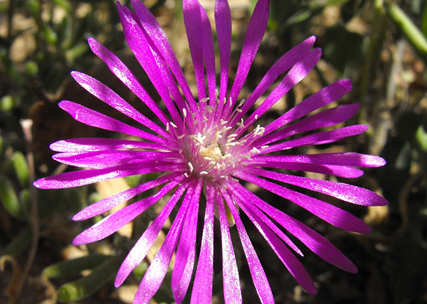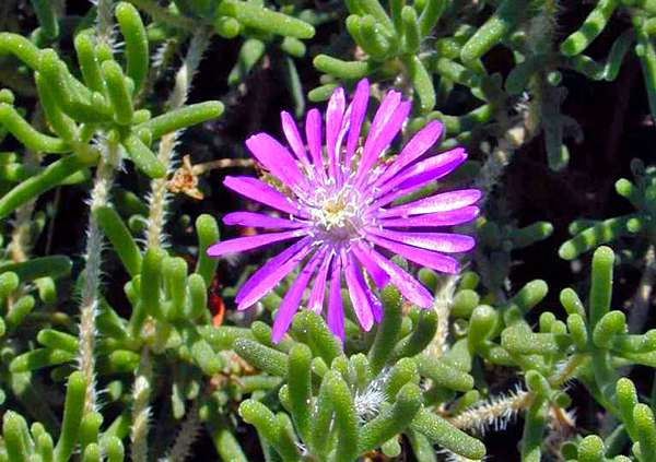 O Orvalho roxo – Drosanthemum hispidum é uma herbácea, pertence à família Aizoaceae, nativa da Namíbia e África do Sul, perene, suculenta, de crescimento rápido, de 20-30 cm de altura e muito ornamental.