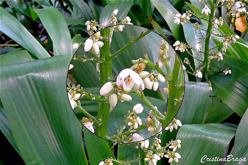 Inflorescência em forma de panícula, com delicadas flores brancas, de 1 cm de diâmetro, tubulares que pendem para baixo e abrem ligeiramente na ponta. Surgem na primavera-verão e atraem pássaros.