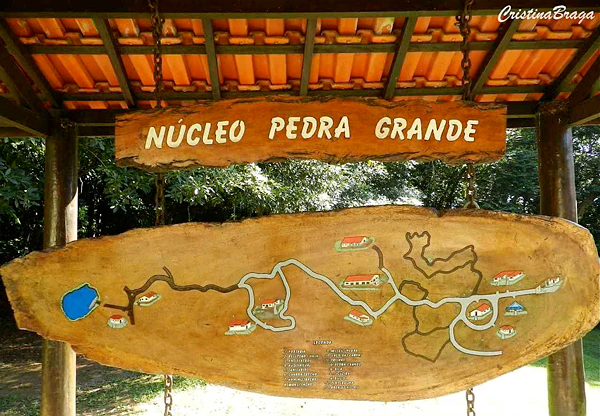 O núcleo mostrado aqui é o da Pedra Grande, são várias trilhas, todas bonitas, agradáveis e bem sinalizadas, com níveis de dificuldade do baixo ao alto, com bancos para descanso e plaquinhas de orientação.