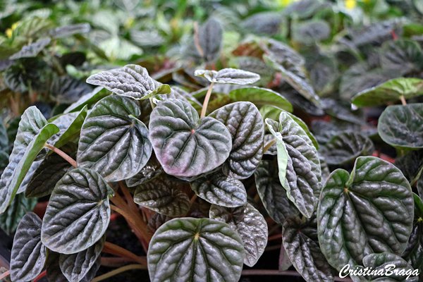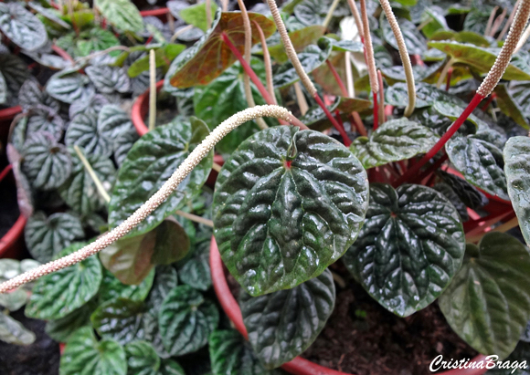 A Peperômia marrom – Peperomia caperata é uma herbácea, pertence à família Piperaceae, nativa da América Central e do Sul, perene, ereta, com caule curto, ramificado, de 20-25 cm de altura, com folhagem densa e ornamental.