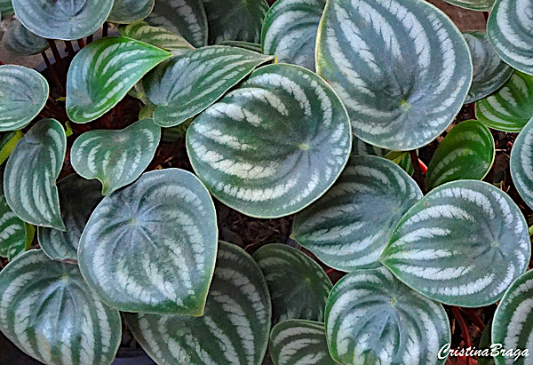 Peperômia melancia é uma herbácea, pertence à família Piperaceae, nativa do norte da América do Sul, perene, suculenta, de até 20 cm de altura e muito ornamental.