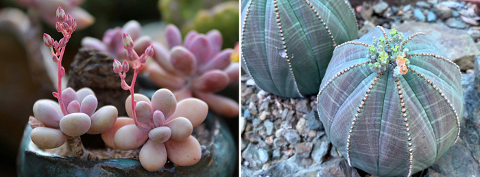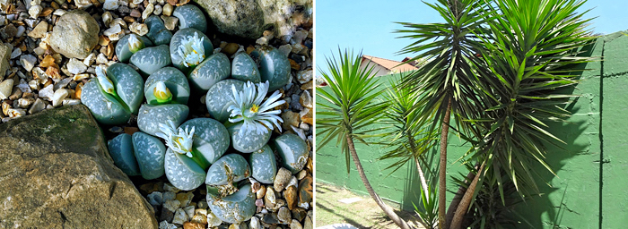 Existem suculentas semilenhosas de porte arbóreo, como a Yucca elephantipes, que pode atingir até 10 metros de altura. No outro extremo estão as minúsculas e raras plantas-pedra, com cerca de 2 cm de diâmetro, nativas das regiões subtropicais áridas no sul da África, que geram belíssimas flores com mais que o dobro do seu tamanho.