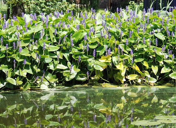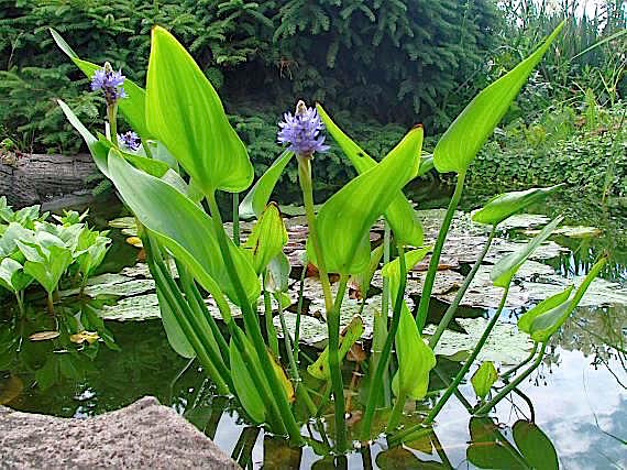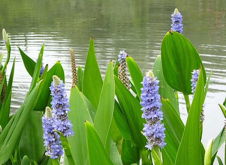 A Pontederia – Pontederia cordata é uma herbácea, pertence à família Pontederiaceas, nativa do Continente Americano, perene, rizomatosa, de crescimento rápido e de até 1 m de altura.