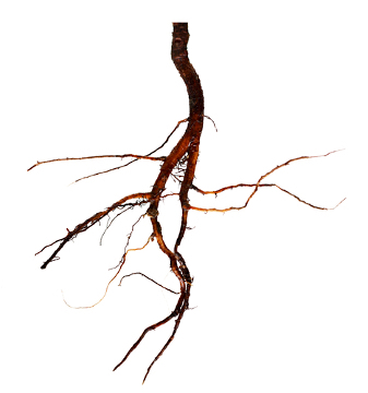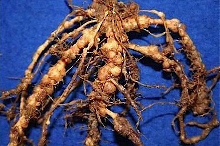 Sintomas – Planta com raízes machucadas, quebradas ou rachadas.
