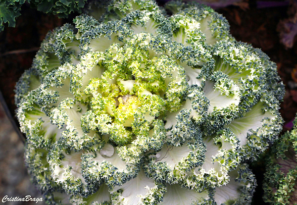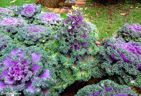 O Repolho ornamental – Brassica oleracea acephala é uma herbácea, pertence à família Brassicaceae, nativa Mediterrâneo, anual ou bianual, com caule curto e de 20-30 cm de altura.
