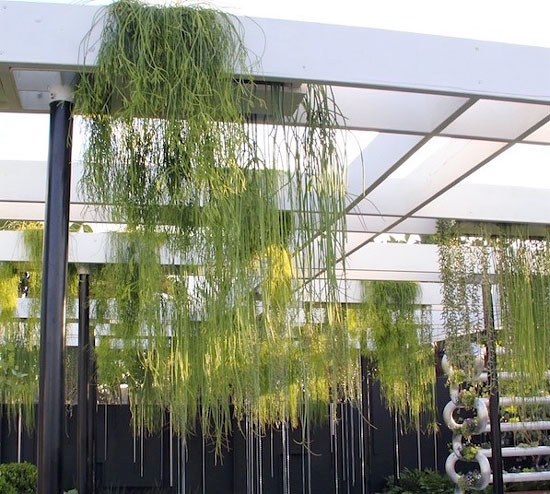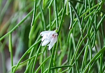 Ramos cilíndricos, estreitos, pendente, de cor verde-claro ou verde-escuro, os principais ramos atingem até 2,5 m de comprimento e os secundários, que surgem em bifurcações, atingem até 1 metro de comprimento por 0,5-0,9 milímetro de diâmetro.