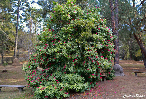 O Rododendro – Rhododendron thomsonii é um arbusto lenhoso, pertence à família Ericaceae, nativo da China e Tibete, perene, de crescimento lento, muito ramificado e de até 6 metros de altura.