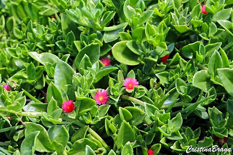 Aptenia é ideal para jardins costeiros, pois tolera a pulverização do mar e cresce em solo arenoso.