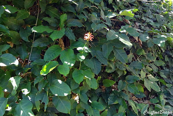 Folhas opostas, ovais e com margem inteira. O ápice da folha pode ser agudo ou ter ponta gotejante.