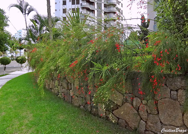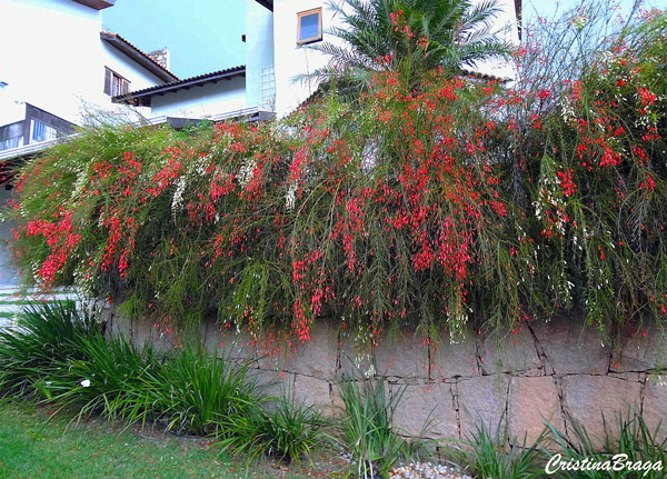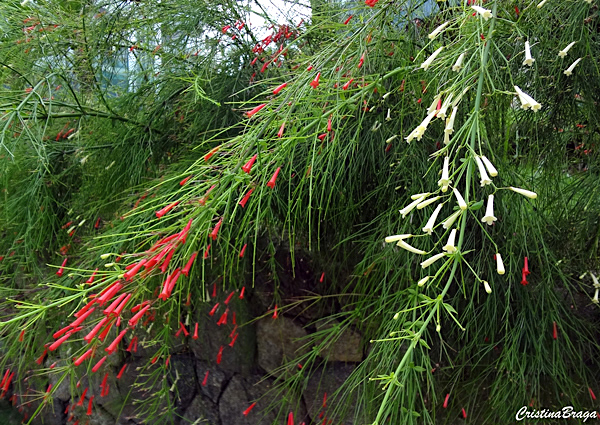 Russélia – Russelia equisetiformis é um arbusto herbáceo, pertence à família Scrophulariaceae, nativo do México, perene, entouceirado, de 0,80 a 1,50 m de comprimento e muito ornamental.