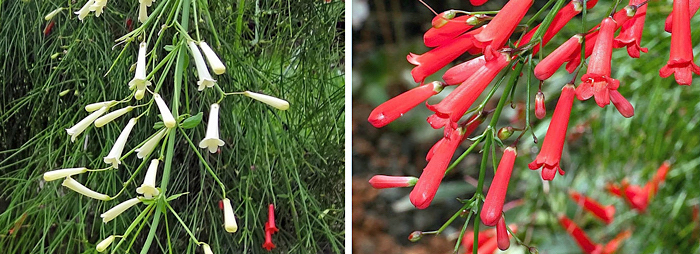 Inflorescências com flores esparsas vermelhas. As flores são tubulares escarlates com cerca de 2,5 cm de comprimento. Ocorre a variedade de flores amarelas. Surgem da primavera ao outono e são muito visitadas por borboletas e beija-flores.