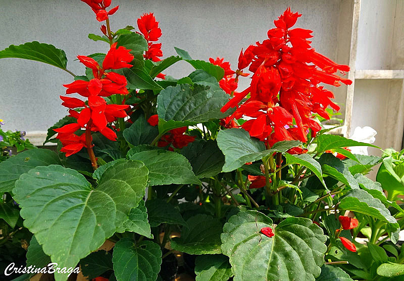 A Sálvia – Salvia splendens é uma herbácea, pertence à família Lamiaceae, nativa do Brasil, perene, ereta, semilenhosa, subarbustiva, de 30-80 cm de altura e muito ornamental.