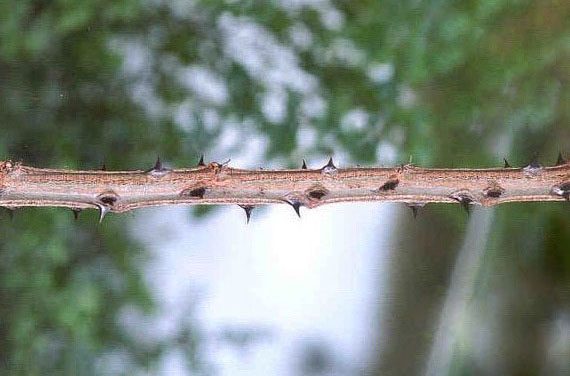 Todas as partes da planta possuem espinhos, inclusive nas inflorescências. Apresenta cerca de 300 espinhos por m², seus ramos são entrelaçados, impossibilitando a entrada de animais e pessoas.