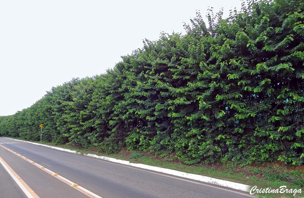 O espaçamento entre as plantas deverá ser de 10 cm, para os troncos se encostarem e formar uma espécie de muralha capaz de conter pessoas e animais.
