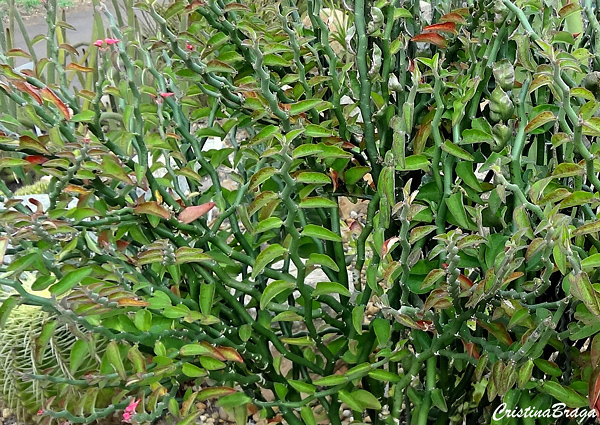 Sapatinho dos jardins – Euphorbia tithymaloides é um arbusto, pertence à família Euphorbiaceae, nativo das Américas tropical e subtropical, perene, ereto, suculento, ramificado e de até 2 metros de altura.