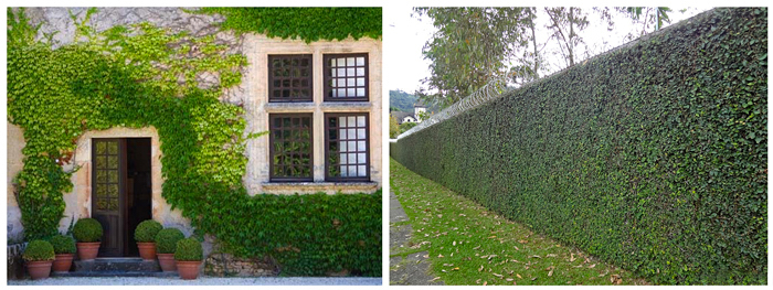 Paredes e Muros são estruturas para trepadeiras sarmentosas, a exemplo da unha de gato e da hera, que formam uma verdadeira cortina vegetal, deixando o jardim charmoso e aconchegante.