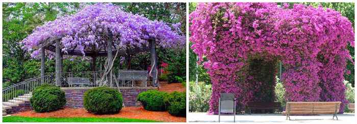 Essas plantas são usadas para dar vida a treliças, muros, cercas e ainda podem subir pelas árvores e arbustos para aumentar a atratividade desses suportes naturais.