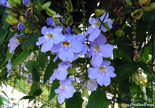 Trepadeira semi lenhosa, perene, muito vigorosa. Flores solitárias ou em inflorescências curtas, azuis com o centro claro, formadas durante o decorrer de quase o ano todo, principalmente na primavera e verão.